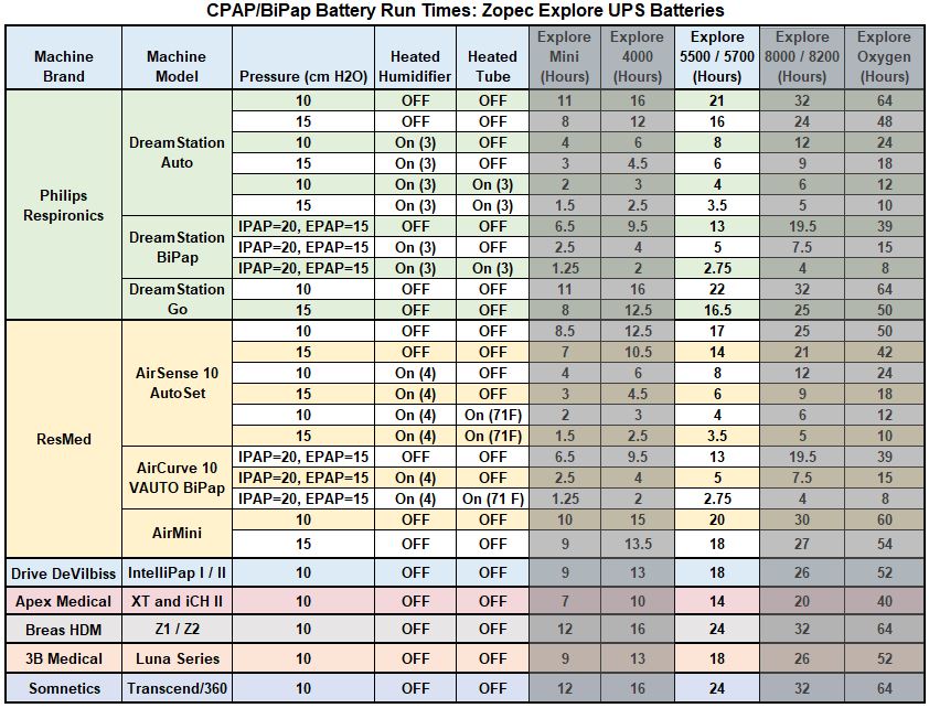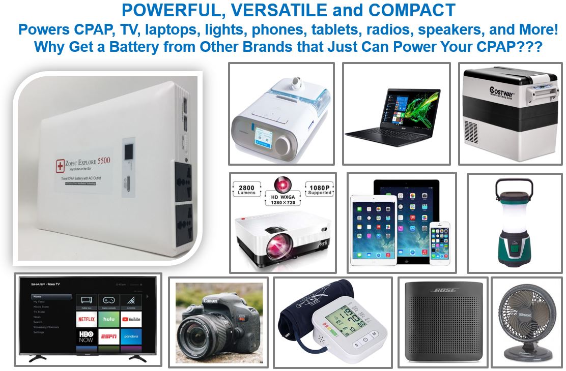 Zopec EXPLORE 5500 Universal CPAP UPS Backup Battery (Humidifier Only. NOT FOR HEATED TUBE.)